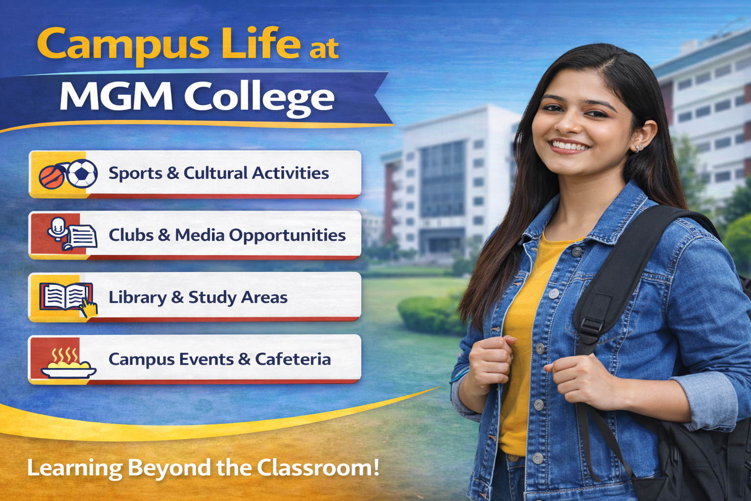 Learning beyond classrooms with vibrant campus life.
